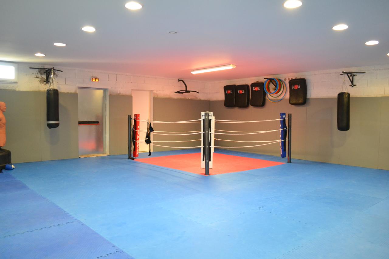 La salle avec des sacs et un ring !